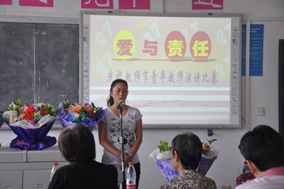 9月9日下午,實驗中學為了慶祝第27個教師節(jié),舉行了“愛與責任”青年教師演講比賽。此次比賽學校邀請到了付繼閩、左永揚、楊香芬、宿聰玲等7位德高望重的退休教師做評委。演講中,8位青年教師結合學校老師們的先進事例和自己教育教學中的親身經(jīng)歷,激情詮釋了“愛與責任”的真正內涵:愛心至上,勤奮工作,樂于奉獻。他們精彩的演講,引發(fā)了在座老師們的共鳴,大家都深刻感受到了作為教師的光榮與自豪,深刻感受到了教師的責任感和使命感。經(jīng)過激烈角逐鄧華、張艷萍、陳麗萍老師獲得了演講比賽的一等獎。
