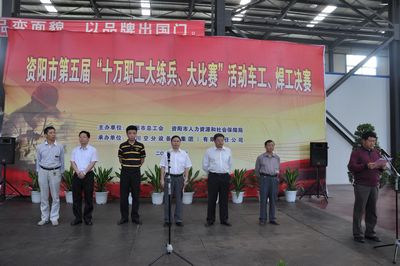 由資陽市人力資源及社會保障局、資陽市總工會主辦,我公司承辦的資陽市第五屆“十萬職工大練兵、大比賽”車工、焊工決賽于5月26日在我公司舉行。中共資陽市委常委、組織部部長康俊,四川省總工會經(jīng)濟部部長朱廷君,副部長范會軍,資陽市人社局調(diào)研員林五一,資陽市人民政府副秘書長鄧繼紅出席開幕式,資陽市總工會副主席謝龍飛主持。(集團)公司副總經(jīng)理王大能出席開幕式并致辭,工會主席陶德大以及來自雁江區(qū)、簡陽市、樂至縣、安岳縣及各企業(yè)的參賽選手、裁判員和工作人員出席。