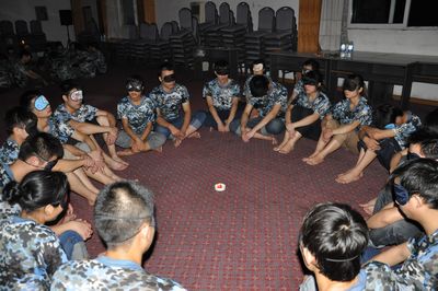 訓練的第一個項目是“急行軍+緊急救援”,單邊路程7.1公里。行進中四支隊伍你追我趕,目的只有一個——爭第一,拿贏旗!然而每個隊里都有累得走不動了的女隊員和選出的“傷員”,為了不讓他們脫離團隊,男隊員采取用背的方式幫助他們趕上隊伍,活動增進了隊員間的友誼,培養(yǎng)了隊員不拋棄、不放棄的團隊精神;在第二天上午進行的“爭分奪秒”項目中,由于野狼連成員對項目各有各的想法,大家沒有統(tǒng)一行動去完成,導致得分遠遠低于其他隊伍。教官和隊員們席地而坐總結失敗原因,爭取在下一項訓練中取得好成績。在接下來“穿越電網(wǎng)”訓練中,野狼連隊員吸取失敗教訓,大家團結一心,統(tǒng)一方針,最終獲得第一名,取得贏旗。