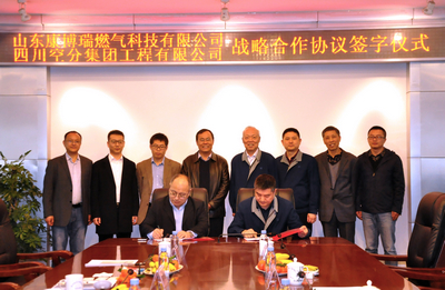 隨后,劉憲洲代表科瑞集團(tuán)山東康博燃?xì)饪萍加邢薰?,(集團(tuán))公司副總經(jīng)理、工程公司總經(jīng)理計(jì)曉亮代表四川空分集團(tuán)工程有限公司簽署了戰(zhàn)略合作協(xié)議。