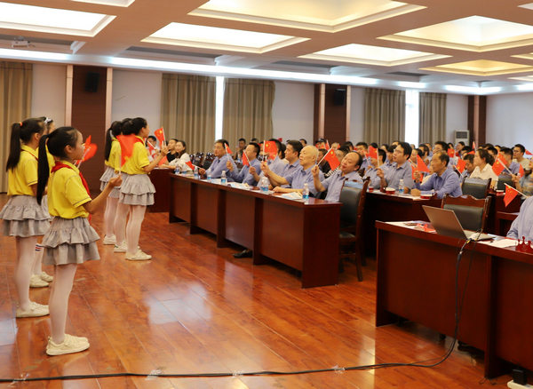 來自實驗中學的8名小學生演唱的《歌唱祖國》在全場掀起互動,員工們揮舞著手中的小紅旗讓活動氣氛達到高潮。公司領導先后致辭,副總經(jīng)理謝波、財務總監(jiān)尹世祥表達了對祖國的祝福,激勵員工努力工作,為國家、為企業(yè)多做貢獻。