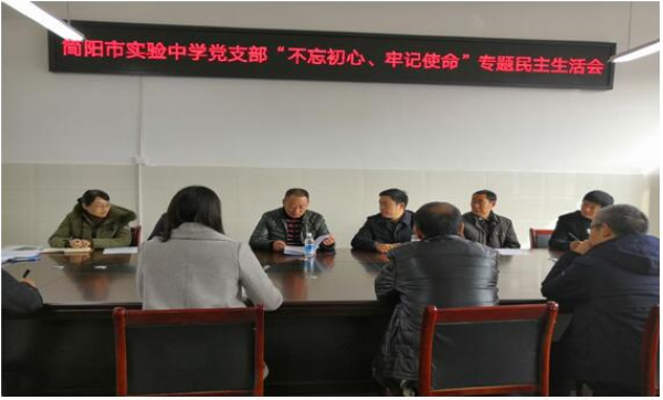 根據(jù)市教育局黨委關(guān)于“不忘初心,牢記使命”專(zhuān)題民主生活會(huì)部署要求,簡(jiǎn)陽(yáng)市實(shí)驗(yàn)中學(xué)于2019年12月16號(hào)下午3點(diǎn)在鳳山校區(qū)5樓會(huì)議室召開(kāi)了領(lǐng)導(dǎo)班子專(zhuān)題民主生活會(huì)。期間,教育局黨委田正發(fā)委員到會(huì)指導(dǎo),學(xué)校領(lǐng)導(dǎo)班子全體成員,學(xué)校黨支部各支委、學(xué)校紀(jì)檢小組成員參加會(huì)議。