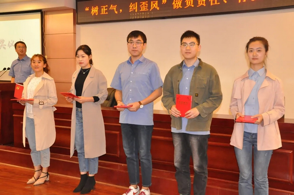 出席演講活動(dòng)的公司領(lǐng)導(dǎo)單金銘等為獲獎(jiǎng)選手頒獎(jiǎng)。