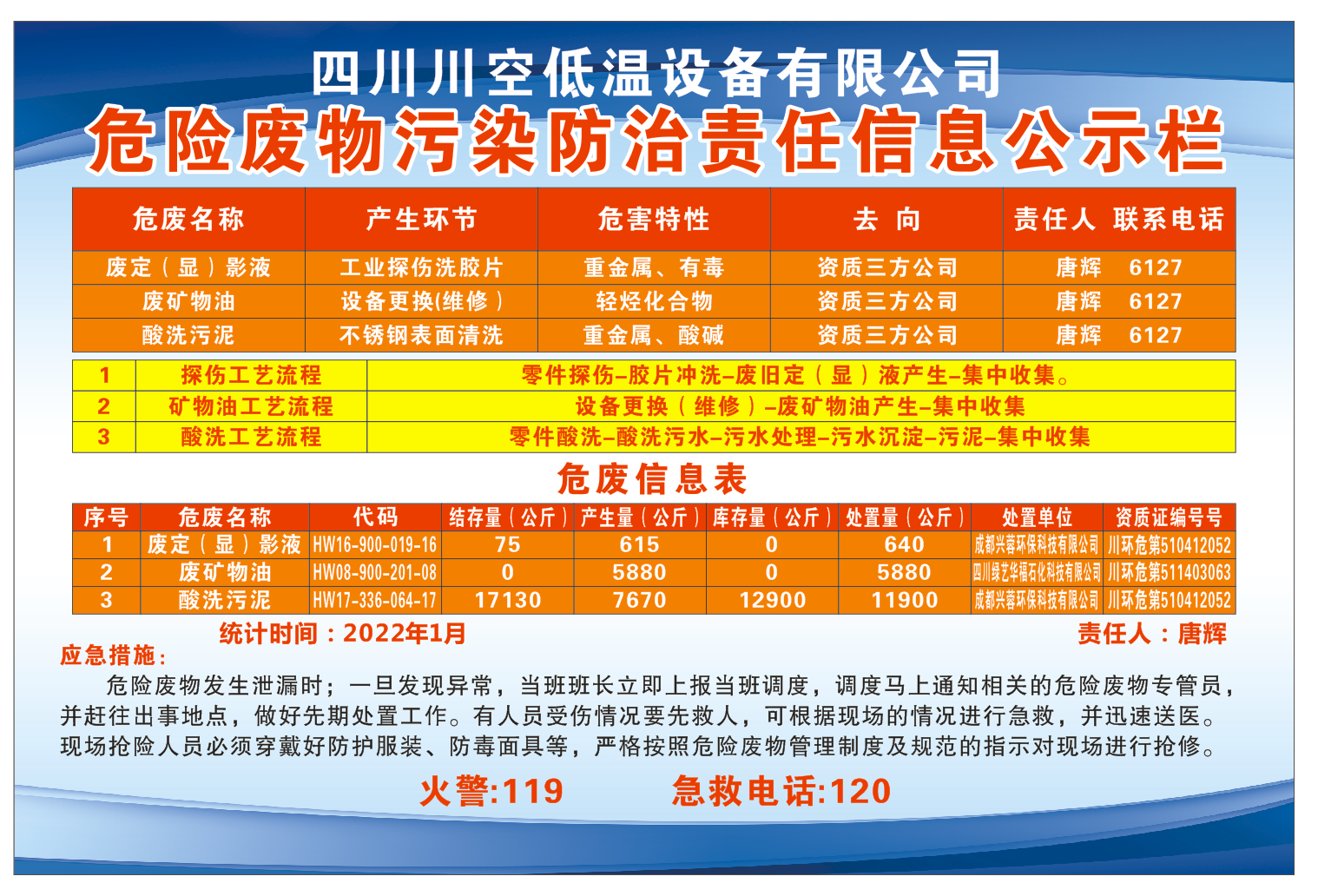 四川川空低溫設(shè)備有限公司——危險廢物污染防治責任信息公示欄