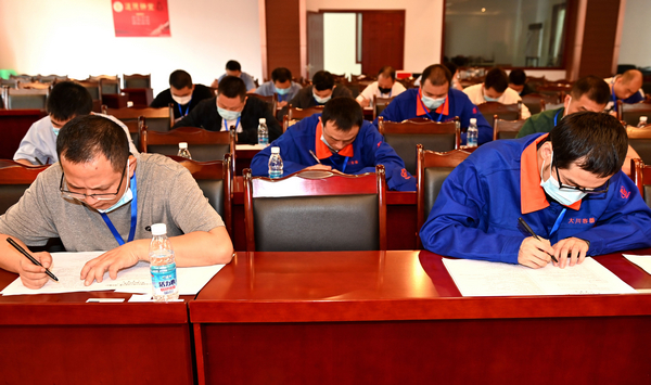 開幕式結(jié)束,經(jīng)過抽簽,大賽第一輪——理論考試緊接著在會議室進(jìn)行。參賽選手嚴(yán)格按照競賽紀(jì)律認(rèn)真參加了考試。