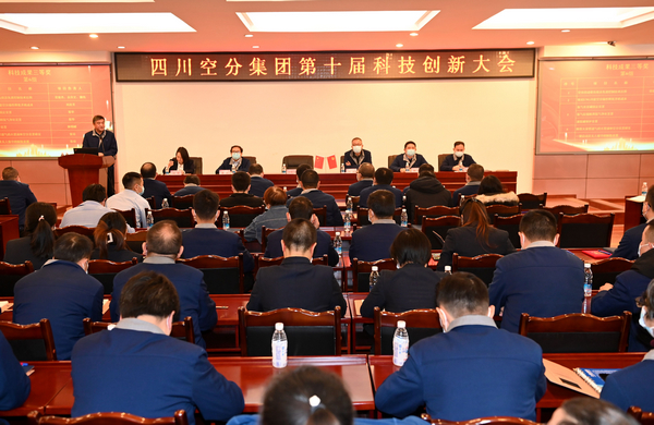 2022年12月8日下午,四川空分集團第十屆科技創(chuàng)新大會在公司技術(shù)樓三樓會議室隆重召開。這是對川空集團過去六年科技創(chuàng)新工作的總結(jié),同時,也為(集團)公司今后科技創(chuàng)新工作吹響了新的號角。大會對六年來公司取得的一批重要科技成果進行了展示,對獲獎科技人員進行了表彰,(集團)公司副董事長單凱、總經(jīng)理計曉亮發(fā)表講話。(集團)公司領(lǐng)導(dǎo)及各單位科技人員代表、獲獎人員代表100余人參會。低溫技術(shù)研究院副院長程香主持大會。