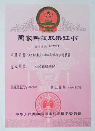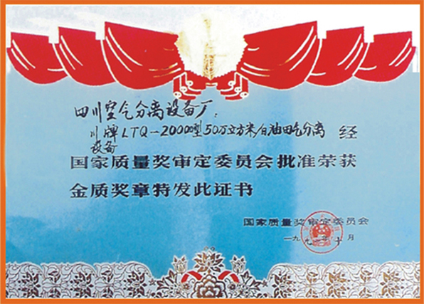 由川空集團(tuán)公司開發(fā)的50×104Nm3/d油田氣分離成套設(shè)備曾獲國(guó)家科技成果二等獎(jiǎng)及國(guó)家質(zhì)量金獎(jiǎng)。